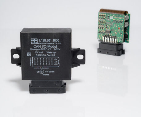 The waterproof CAN I/O PLC Waterproof PRO V2 with 16 I/Os convinces by the various application possibilities in numerous control applications. In addition to eight I/Os that can be configured as inputs or outputs, it offers six analog and two digital inputs. The CAN controller also has integrated protection diodes to limit the free-wheeling voltage generated by the inductive loads.