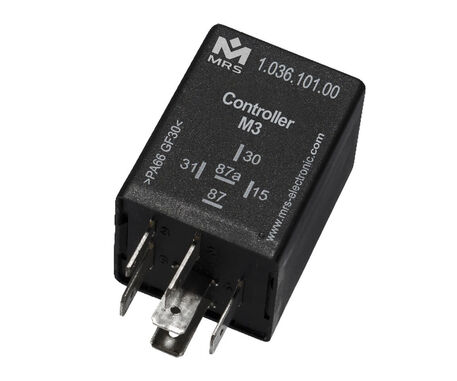 The M3 controller is a powerful and cost-effective controller. In addition to the unprogrammed control M3 there is the control in the programmed versions: Pulse relay, step switch relay, blinker as well as other functions on request. The mentioned functions are stored by default and only have to be configured and parameterized. Of course, all standard functions can also be ordered preset directly from the factory.
