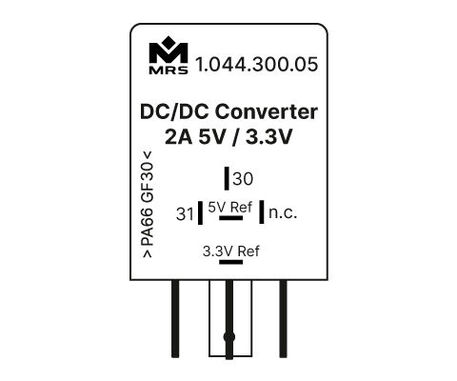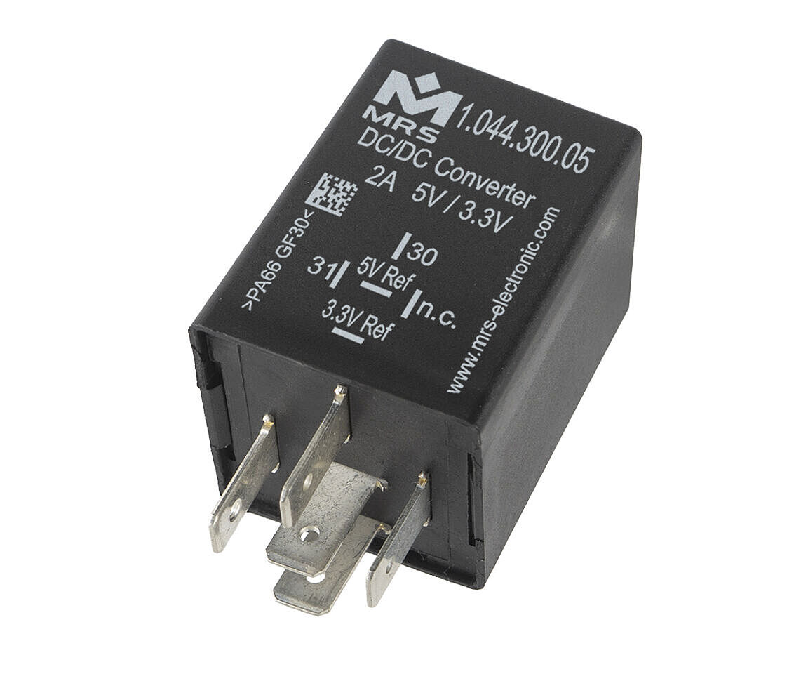 The DC/DC converter provides you with two stabilized reference voltages for your applications, which can be used e.g. to supply sensors. We offer you the combinations of 17 V and 5 V, 10 V and 5 V or 5 V and 3.3 V.