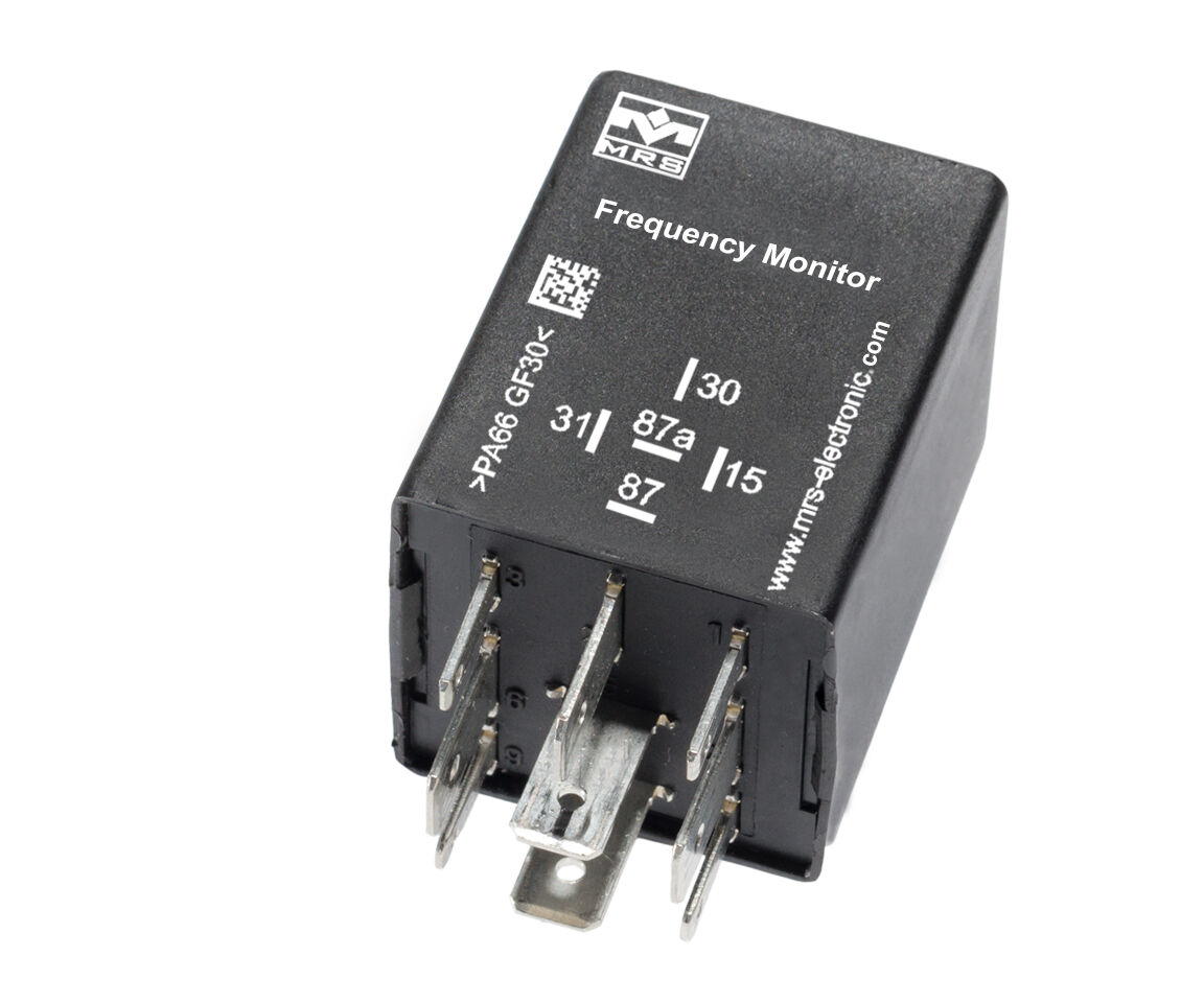 The frequency monitor measures the input signal frequency applied to terminal 15 and energizes/deenergizes the output when the signal frequency exceeds/drops below the defined threshold frequency. The threshold frequency can be selected from the 10 - 1.000 Hz frequency range. In addition, combinations including custom delay times are possible. Please refer to the chapter housing and base plates for additional housing options.