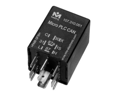 Complex applications can be realized in C. The functions as well as the measured values are controllable and readable via the CAN bus. Programming is possible using the software MRS Developers Studio, graphically with CANgraph. The use of the powerful processor makes the Micro PLC CANopen and SAE J1939 capable. With the Micro PLC CAN Relay 32-bit, there is also a pin-compatible product for the Micro PLC CAN 12 V with a 32-bit processor and therefore even more computing power.