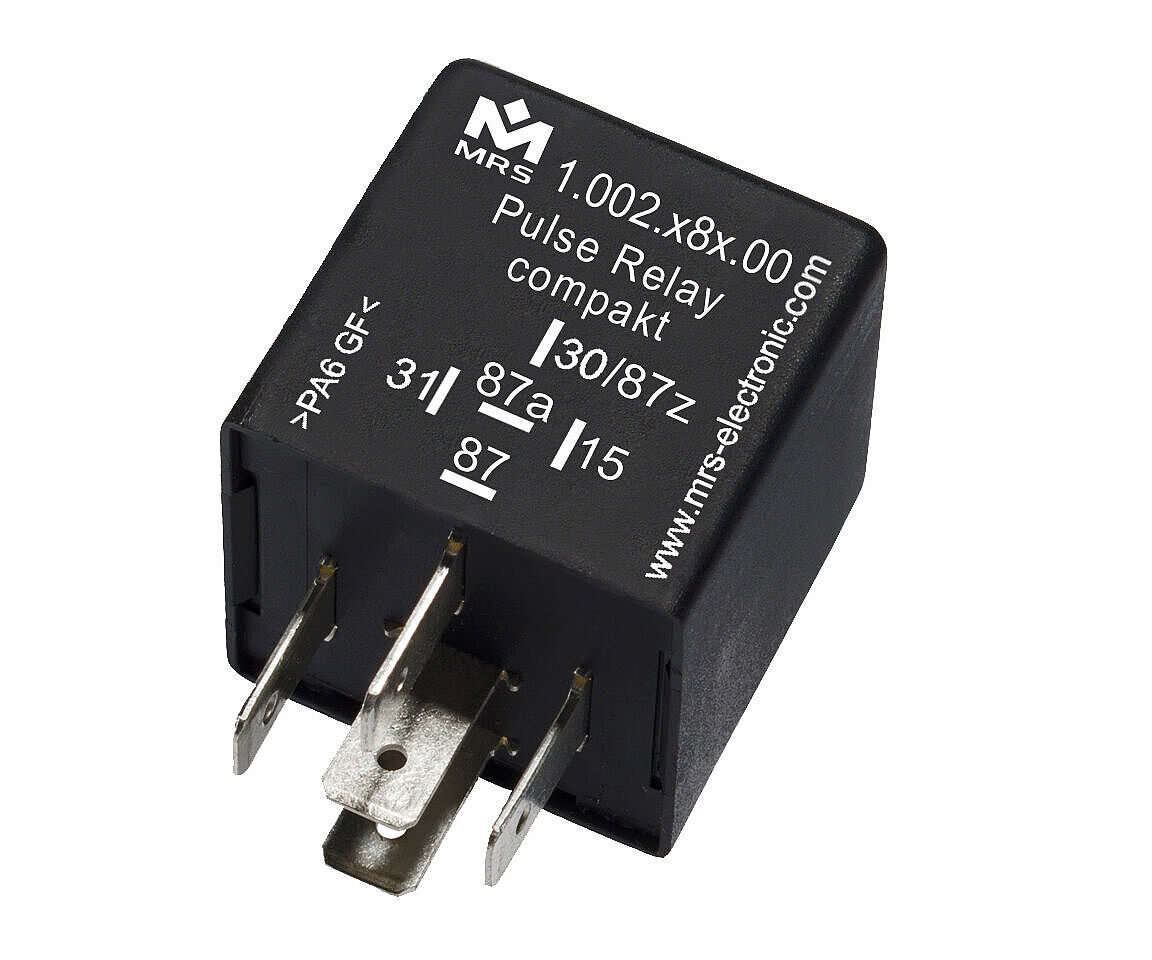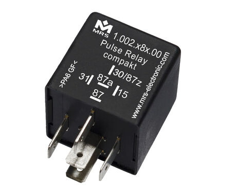 Pulse relays compact find use when consumers are to be switched on or off for a defined time. Please specify the desired impulse time when ordering. Circuit diagram S1 and S2: Operating voltage is applied to terminal 30. If the voltage is set at Terminal 15, the relay will immediately pull in for the specified time and then fall off again. The duration of the control signal has no effect on the output pulse duration (i.e. the relay is not retriggerable).