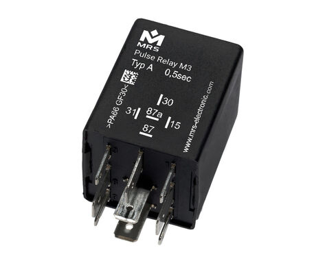 Pulse relays M3 are used when consumers are to be switched on or off for a defined time. Please specify the desired impulse time when ordering. Circuit diagram S1 and S2: operating voltage is applied to terminal 30. If the voltage is set at Terminal 15, the relay will immediately pull in for the specified time and then fall off again. The duration of the control signal has no effect on the output pulse duration (i.e. the relay is not retriggerable).