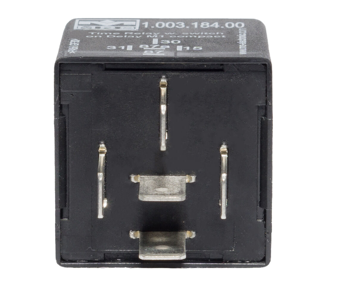 Time relays with switch on delay compact switch on the consumer after the specified delay time has elapsed. Please specify the desired delay time when ordering. All schematics: Operating voltage is applied to terminal 30/87z. If the voltage is set at Terminal 15, the relay will pull on at the end of the specified time. If the voltage is removed at Terminal 15, the relay immediately drops off.