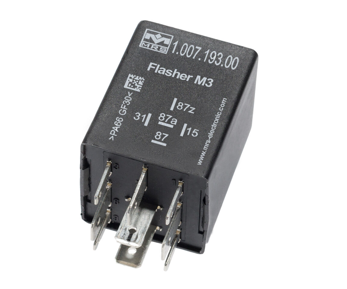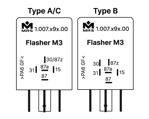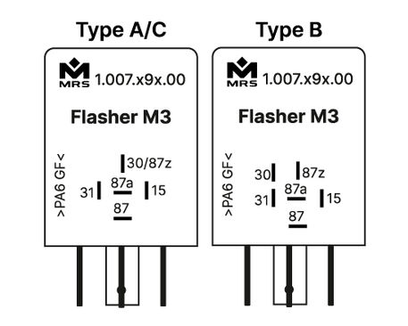 Blinkgeber Start/Stop M3 werden eingesetzt für das Richtungs- und Warnblinken. Der Blinkgeber kann für verschiedene Fahrzeugtypen verwendet werden. Alle Schaltbilder: An Klemme 30/87z wird Betriebsspannung angelegt. Wird an Klemme 15 Spannung angelegt, startet der Blinkgeber unmittelbar. Er erzeugt im Betrieb 90 +/-30 Impulse pro Minute. Der Ausgang ist mit bis zu 20 A belastbar, höhere Lasten können durch ein nachgeschaltetes LastRelais ebenfalls betrieben werden. An 87a liegt das invertierte Ansteuersignal an. Gehäuseformen finden Sie im Kapitel Gehäuse und Grundkörper.