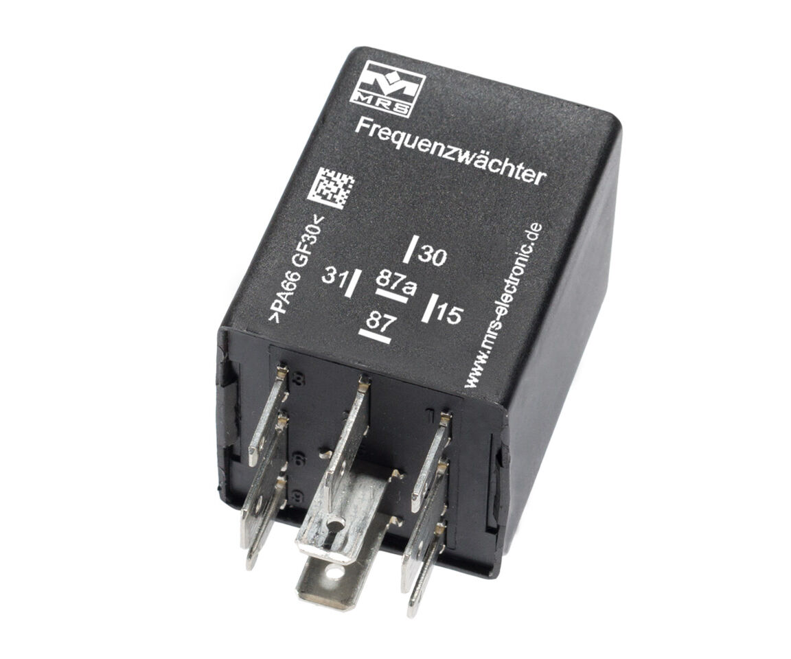 Der Frequenzwächter schaltet Verbraucher bei Über- oder Unterschreiten bestimmter Schwellfrequenz an Klemme 15 ab. Die Frequenzschwellen können frei gewählt werden, Frequenzbereich 1 - 1.000 Hz bitte bei der Bestellung angeben. Verzögerungszeiten sind ebenfalls möglich. Gehäuseformen finden Sie im Kapitel Gehäuse und Grundkörper.