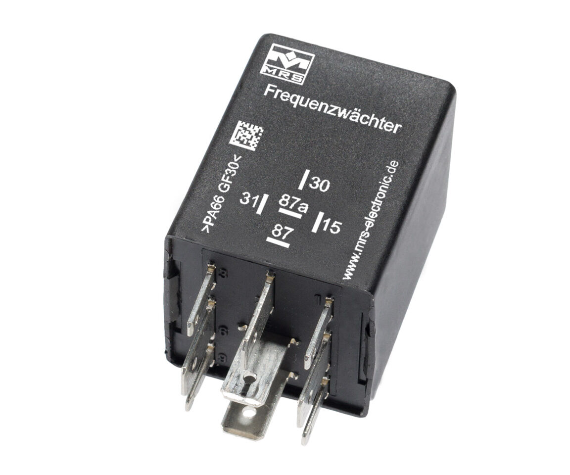 Der Frequenzwächter schaltet Verbraucher bei Über- oder Unterschreiten bestimmter Schwellfrequenz an Klemme 15 ab. Die Frequenzschwellen können frei gewählt werden, Frequenzbereich 10 - 1.000 Hz bitte bei der Bestellung angeben. Verzögerungszeiten sind ebenfalls möglich. Gehäuseformen finden Sie im Kapitel Gehäuse und Grundkörper.