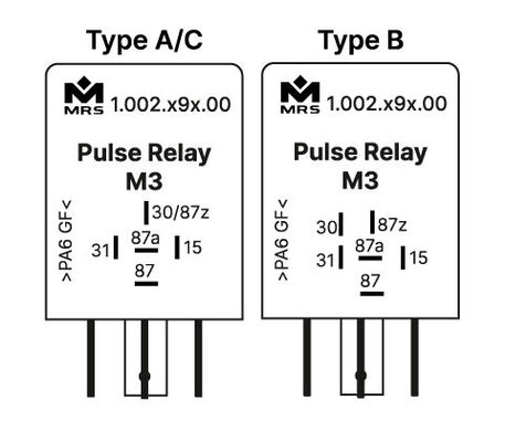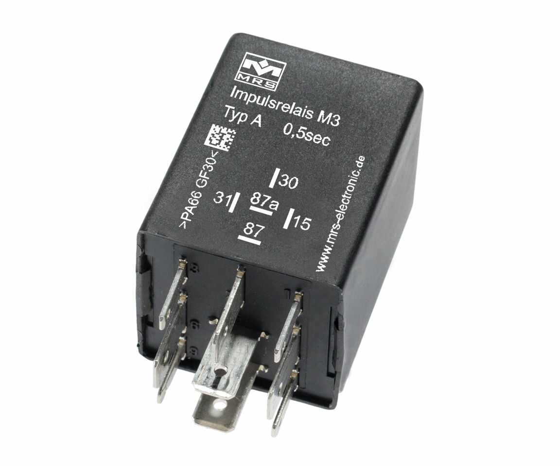Impulsrelais M3 finden Einsatz, wenn Verbraucher für eine definierte Zeit ein- oder ausgeschaltet werden sollen. Bitte geben Sie bei der Bestellung die gewünschte Impulszeiten an. Schaltbild S1 und S2: An Klemme 30 wird Betriebsspannung angelegt. Wird an Klemme 15 Spannung angelegt, zieht das Relais unmittelbar für die angegebene Zeit an und fällt danach wieder ab. Die Dauer des Ansteuersignals hat keinen Einfluss auf die Ausgangsimpulsdauer (d.h. das Relais ist nicht nachtriggerbar).
