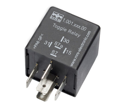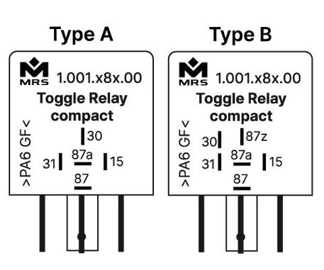 Anwendungsbereich von Schrittschaltrelais kompakt ist das Ein- und Ausschalten von Verbrauchern über Tastbetrieb. Schaltbild S1: Mit dem Schrittschaltrelais kompakt kann ein Verbraucher über einen Taster geschalten werden. Wird an Klemme 15 ein positiver / negativer Impuls angelegt, schaltet das Relais und hält sich selbst. Mit einem weiteren Impuls wird wieder geschalten. (Stromstossschalter bzw. Toggle Flip-Flop). Die Klemme 15 ist entprellt. Schaltbild S2: Die Kontakte sind getrennt von der Ansteuerung und können daher in Verknüpfungen eingesetzt werden. Bei dieser Variante ist der Relaiskontakt komplett potentialfrei und somit in der Lage Wechselspannung zu schalten. Gehäuseformen finden Sie im Kapitel Gehäuse und Grundkörper.