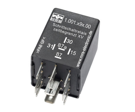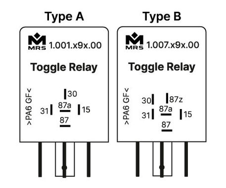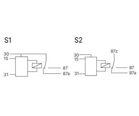 Anwendungsbereich von Schrittschaltrelais M3 ist das Ein- und Ausschalten von Verbrauchern über Tast- bzw Tasterbetrieb. Schaltbild S1: Mit dem Schrittschaltrelais kann ein Verbraucher über einen Taster geschalten werden. Wird an Klemme 15 ein positiver / negativer Impuls angelegt, schaltet das Relais und hält sich selbst. Mit einem weiteren Impuls wird wieder geschalten (Stromstossschalter bzw. Toggle Flip-Flop). Die Klemme 15 ist entprellt. Schaltbild S2: Die Kontakte sind getrennt von der Ansteuerung und können daher in Verknüpfungen eingesetzt werden. Bei dieser Variante ist der Relaiskontakt komplett potentialfrei und somit in der Lage Wechselspannung zu schalten. Gehäuseformen finden Sie im Kapitel Gehäuse und Grundkörper.