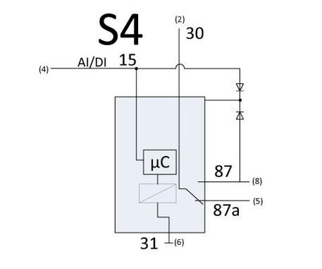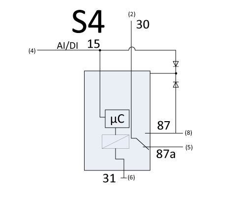 Schaltbild S2: Die Kontakte sind getrennt von der Ansteuerung und können daher in Verknüpfungen eingesetzt werden. Bei dieser Variante ist der Relaiskontakt komplett potentialfrei und somit in der Lage Wechselspannung zu schalten. Schaltbild S4: Das Relais verbraucht durch die Diodenbeschaltung nach dem Abfallen keinen Ruhestrom. Variante S4 nur 10/15 A (Ö/S). Gehäuseformen finden Sie im Kapitel Gehäuse und Grundkörper.