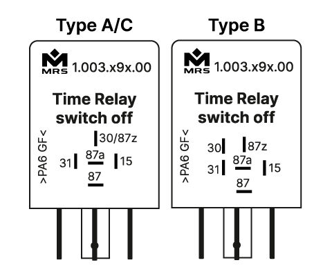 Zeitrelais abfallverzögert M3 schalten Verbraucher nach Ablauf der vorgegebenen Verzögerungszeit aus. Bitte geben Sie bei der Bestellung die gewünschte Verzögerungszeit an. Alle Schaltbilder: An Klemme 30/87z wird Betriebsspannung angelegt. Wird an Klemme 15 Spannung angelegt, zieht das Relais unmittelbar an. Wird die Spannung an Klemme 15 weggenommen fällt das Relais nach Ablauf der vorgegebenen Zeit ab.