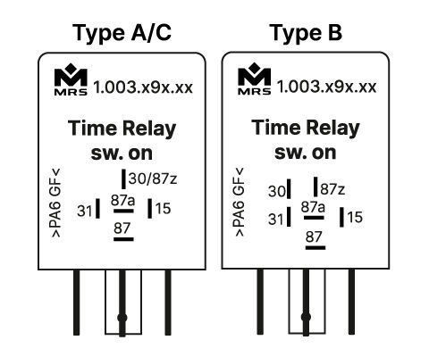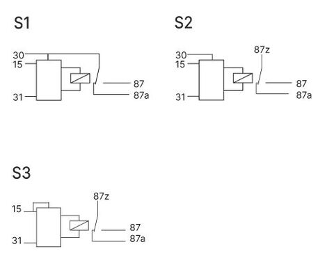 Zeitrelais anzugsverzögert M3 schalten Verbraucher nach Ablauf der vorgegebenen Verzögerungszeit ein. Bitte geben Sie bei der Bestellung die gewünschte Verzögerungszeit an. Alle Schaltbilder: An Klemme 30/87z wird Betriebsspannung angelegt. Wird an Klemme 15 Spannung angelegt, zieht das Relais nach Ablauf der vorgegebenen Zeit an. Wird die Spannung an Klemme 15 weggenommen fällt das Relais unmittelbar ab.